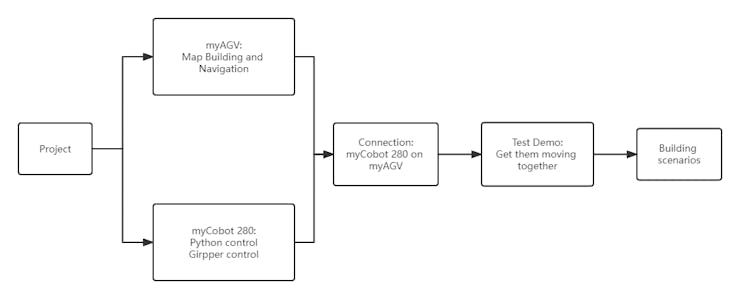 After dealing with the small functions, the next step is to establish communication between myCobot and myAGV.-